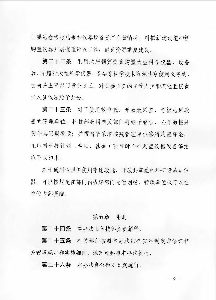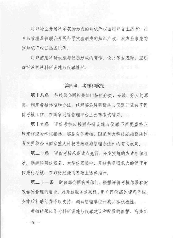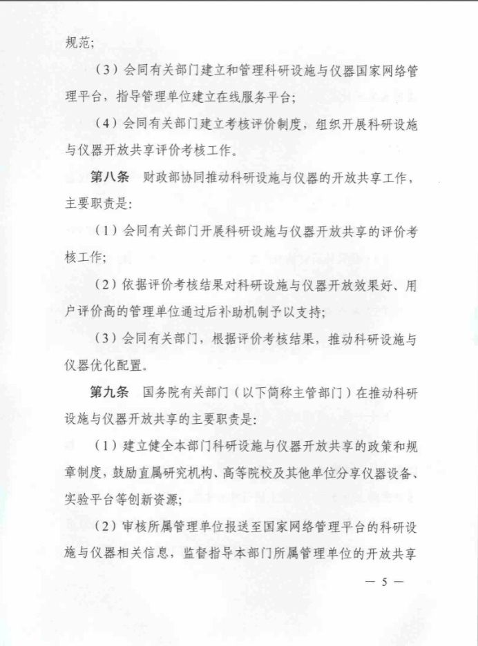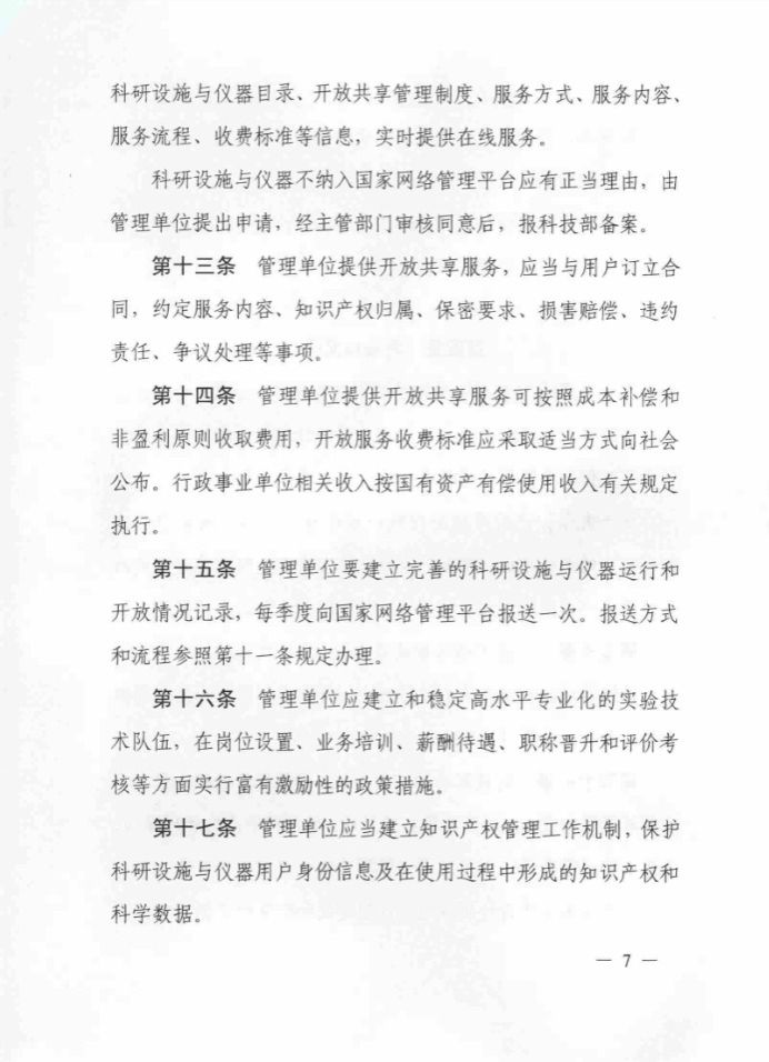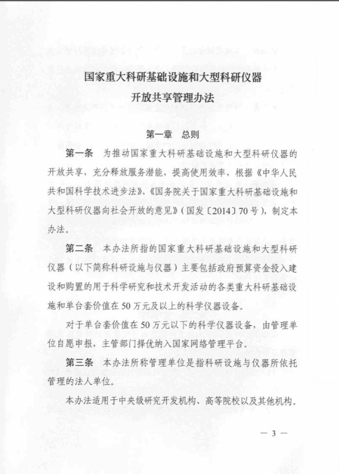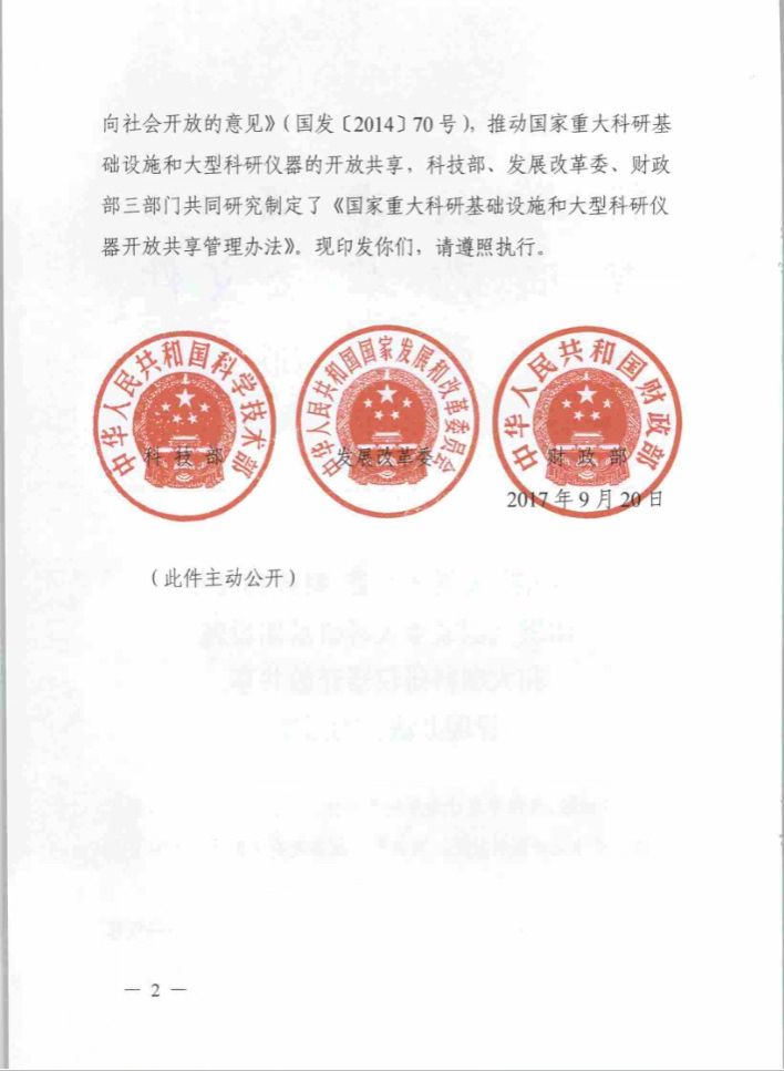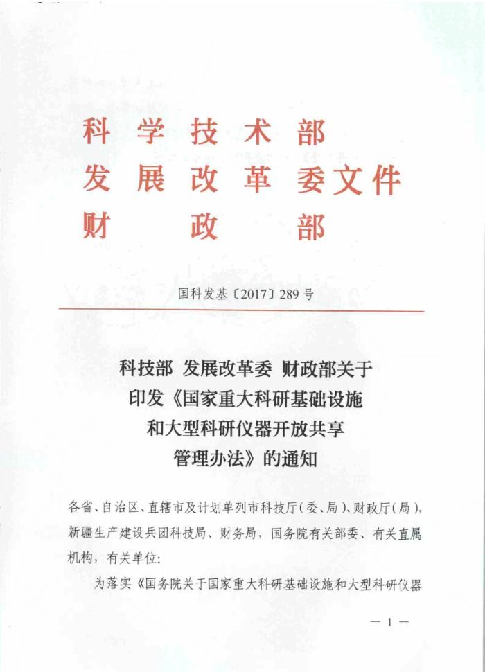 《国家重大科研基础设施和大型科研仪器开放共享管理办法》(国科发基〔2017〕289号)
